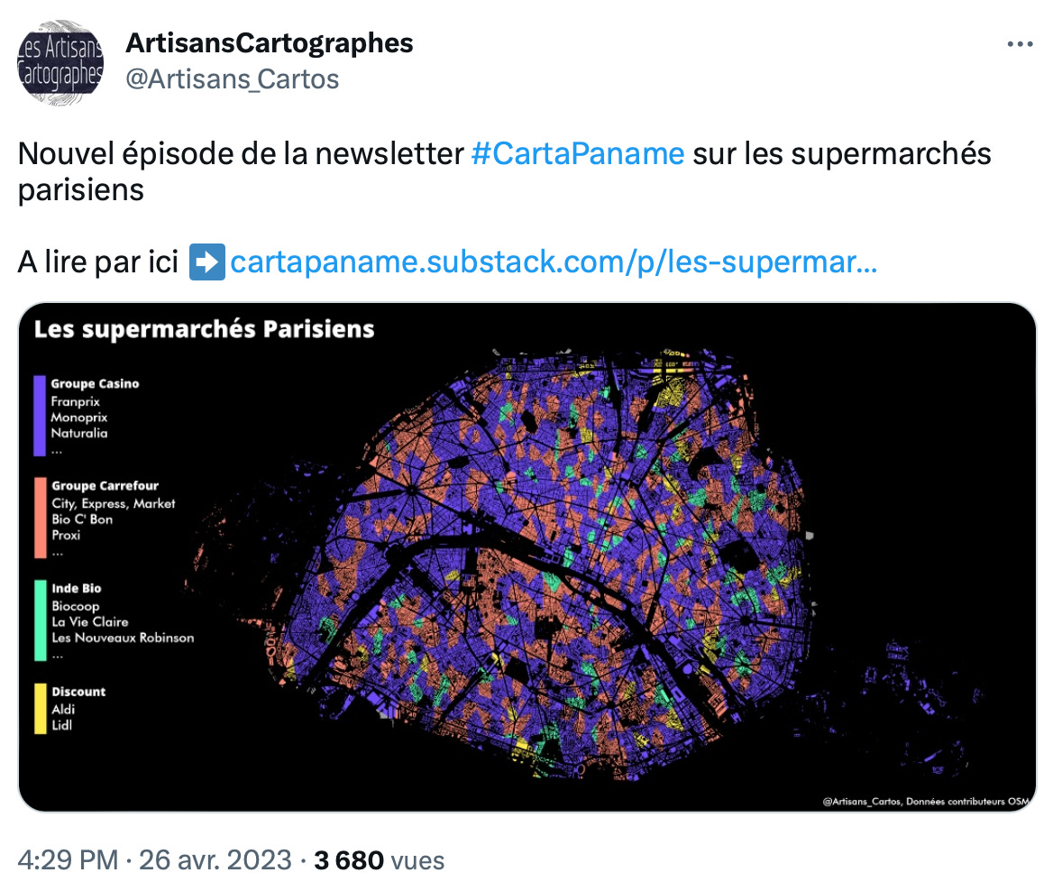 Une carte des supermarchĂ©s Ă Paris. Pour ceux qui veulent lire lâarticle câest par ici.